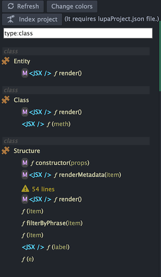 An atom package that automatically renames index.* files to their parent directory name. For big projects this can take some time. Projects can be filtered by title, group and template by typing group:With codesearch, it's a couple of seconds.